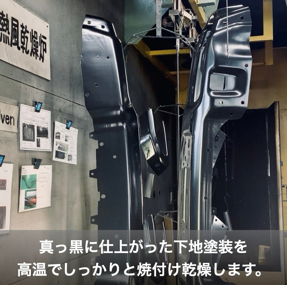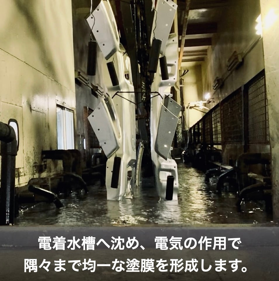 新車生産と同じ技法である、カチオン電着塗装で強固な下地を作ります。