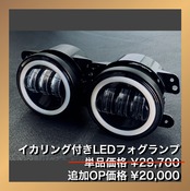 (オプションでイカリング付きLEDフォグランプのご用意があります。これもカッコいいです。)