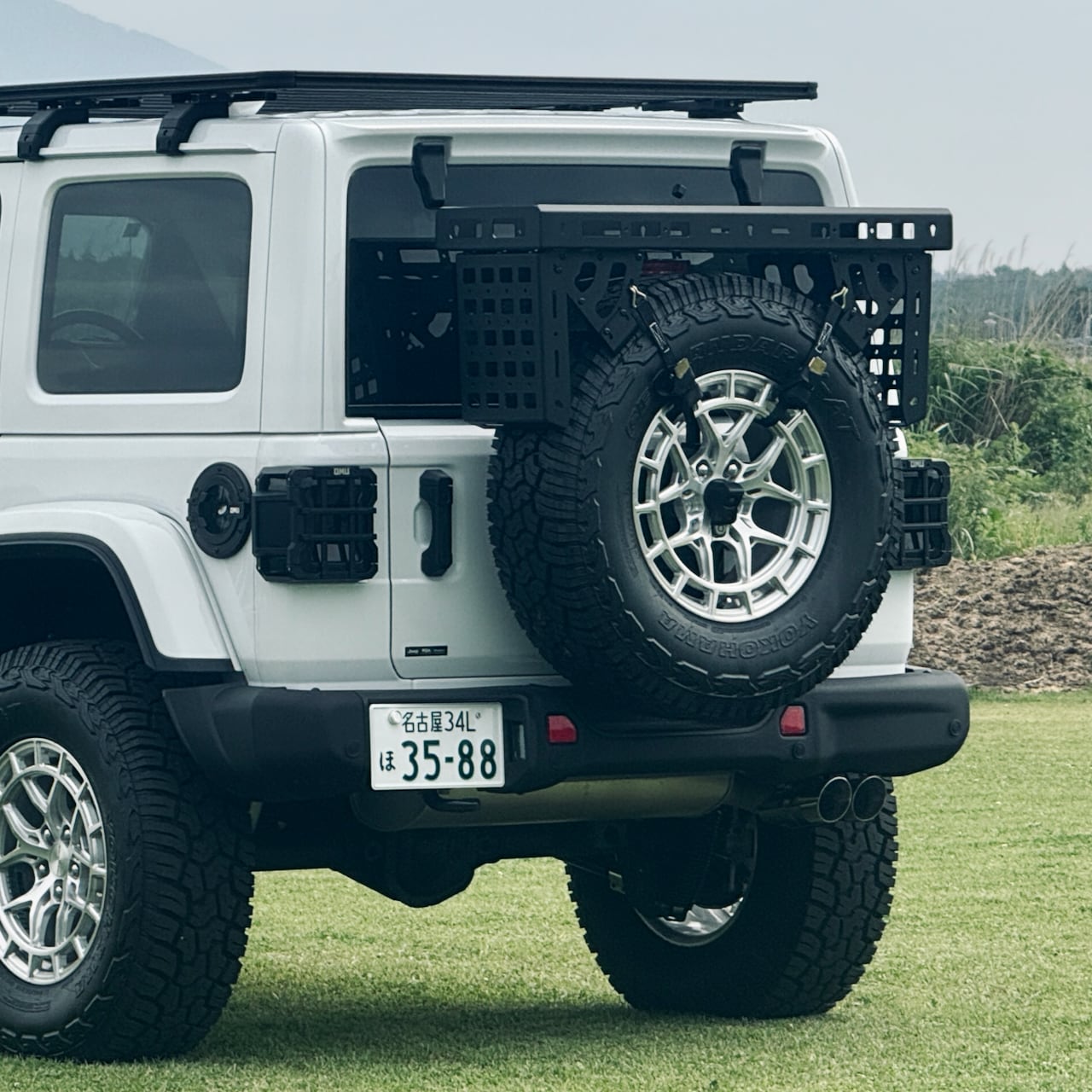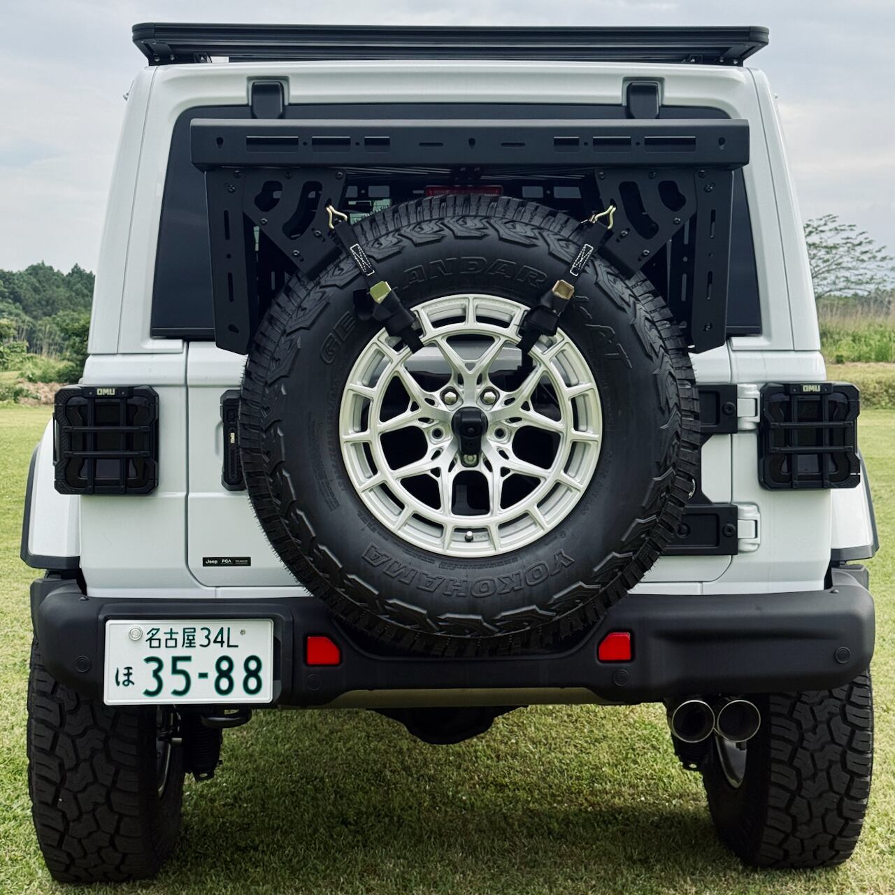この樹脂パーツ部分をリアバンパー本体と同じラギットペイントを施す事で一体感が生まれます。既製品としてライナップするのはトレイルキングのリアバンパーだけの試みです。